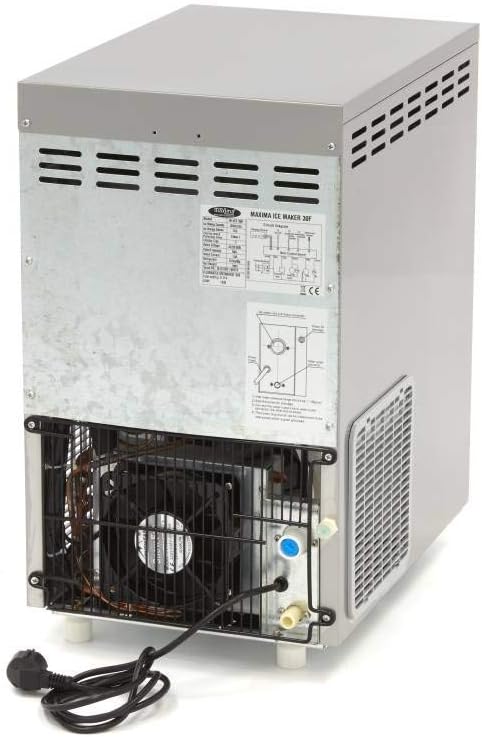 - Izvietojums: Position the ice machine on a flat, stable, and secure countertop or bar. Ensure there is sufficient space around the rear of the unit for proper air circulation, as it is air-cooled. Avoid placing it near heat sources or in direct sunlight.