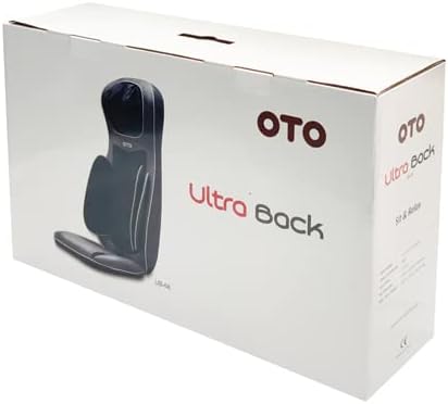 Image: The OTO Ultra Back UB-68 3D Massage Seat Pad packaging box, showing the product image and brand logo.