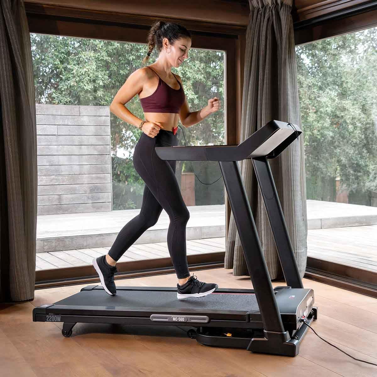 The MC-560 treadmill is designed for home cardio workouts, offering a comfortable and dynamic way to walk or run indoors. It features a powerful 2200W motor, adjustable speed up to 18 km/h, and 15 levels of incline to vary your training intensity and enhance cardiovascular performance.