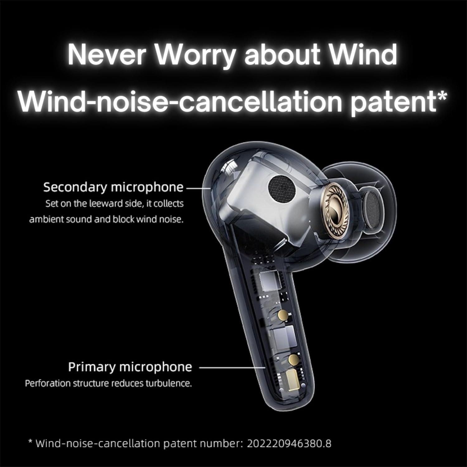 Image: A detailed diagram of a QCY T13X earbud, highlighting the placement of its multiple microphones for Environmental Noise Cancellation (ENC) and wind noise reduction. This image explains the technology behind clear calls.